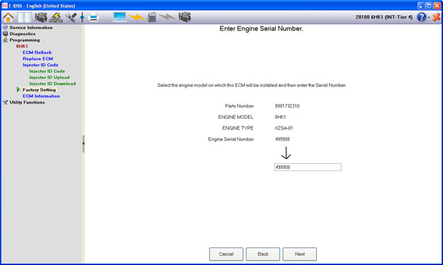 The Injector ID Code function is used to reprogram Injector ID Code after fuel injectors have been replaced.