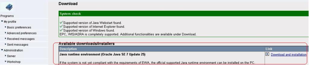 Version of Autoline 8.3 and above provide an out of the box support of EPC respectively WIS/ASRA via EWANAPI. The tradeoff is that it currently expects some files to be located in the user profile directory. If those files are not present Autoline 8.3 will not enable the EPC or WIS/ASRA buttons. The best way to install EWANAPI on user's PCs is by use of the following settings - which have to be set on the EWA server inside the file [EWA-HOME]\clientapps\ewanapi\ewanapi.ini: