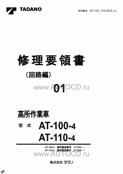 Заводская инструкция по ремонту крана Тадано - Tadano Aerial Platform AT-110-4 содержит подробную информацию о сборке и разборке агрегатов, процедур диагностики, электрические схемы, моменты затяжек и др.