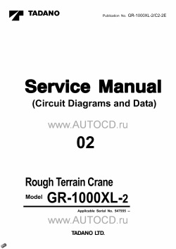 сервисная книга для крана GR-1000XL-3 от производителя кранов Тадано, сборка и разборка агрегатов, процедуры диагностики, электрические схемы, моменты затяжек и др.