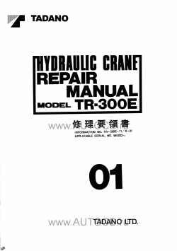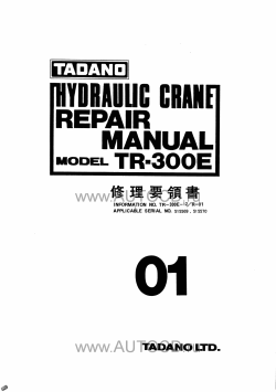 Заводская инструкция по ремонту крана Тадано - Tadano Hydraulic Crane TR-300E-1 содержит подробную информацию о сборке и разборке агрегатов, процедур диагностики, электрические схемы, моменты затяжек и др.